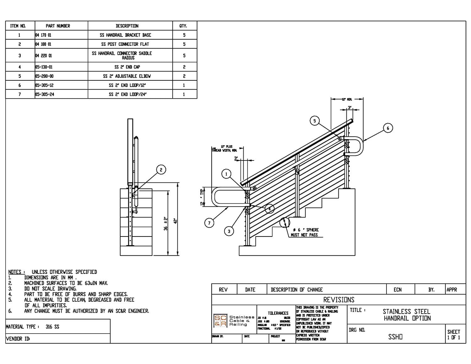 - Rail Height: 36in, 42in, or Custom