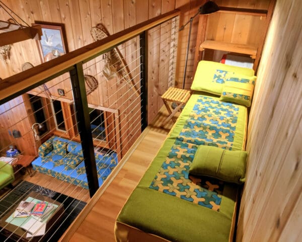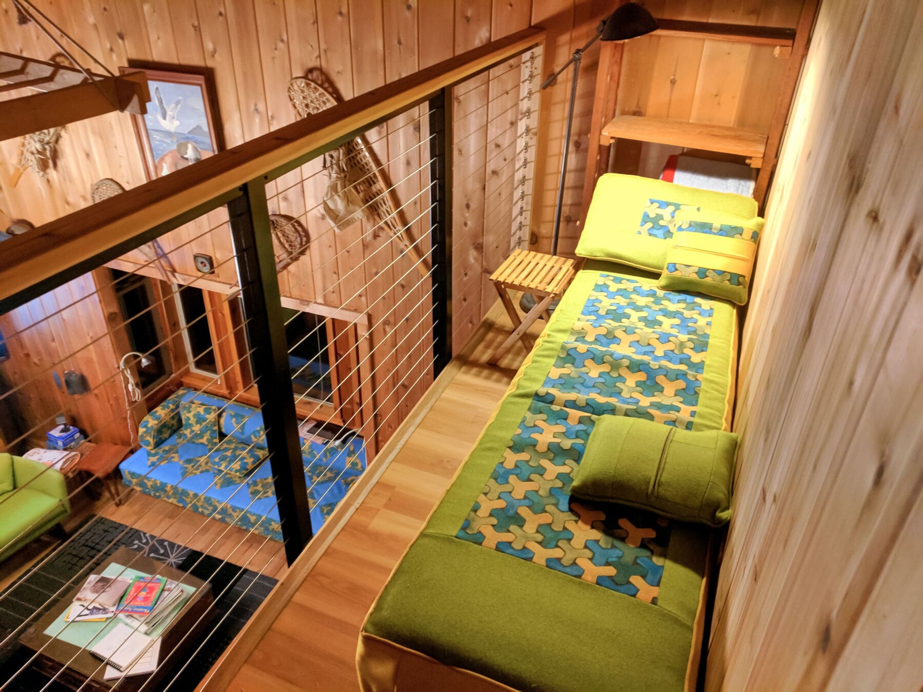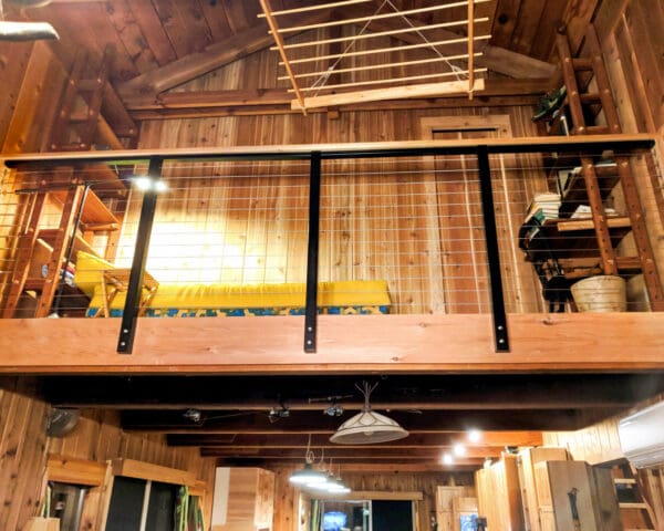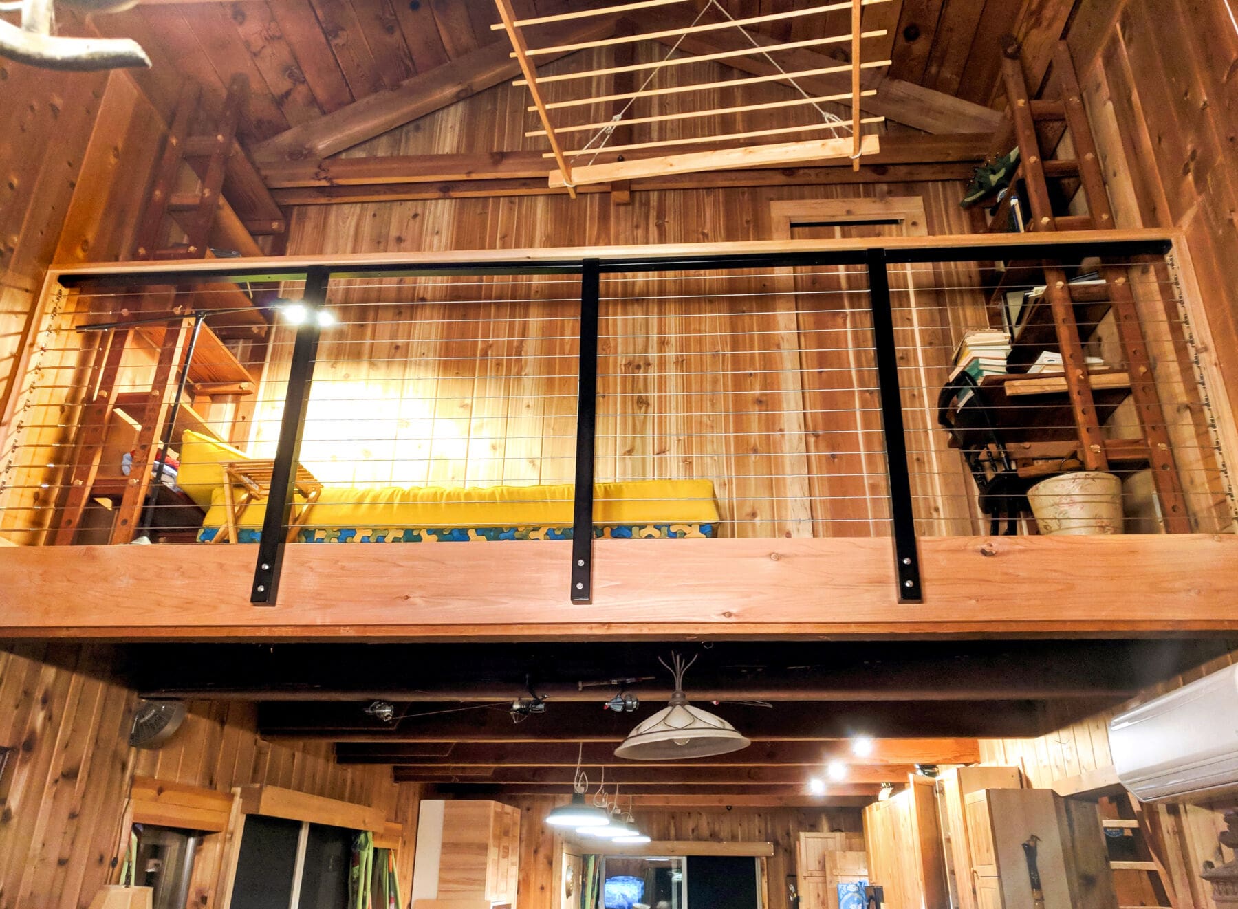 Wanting to utilize a narrow overhang in the living room of this Mount Shasta, CA home, our customer decided to turn it into a cozy reading area. They needed a railing that would provide adequate protection without making the small area feel too cut off from the rest of the house.