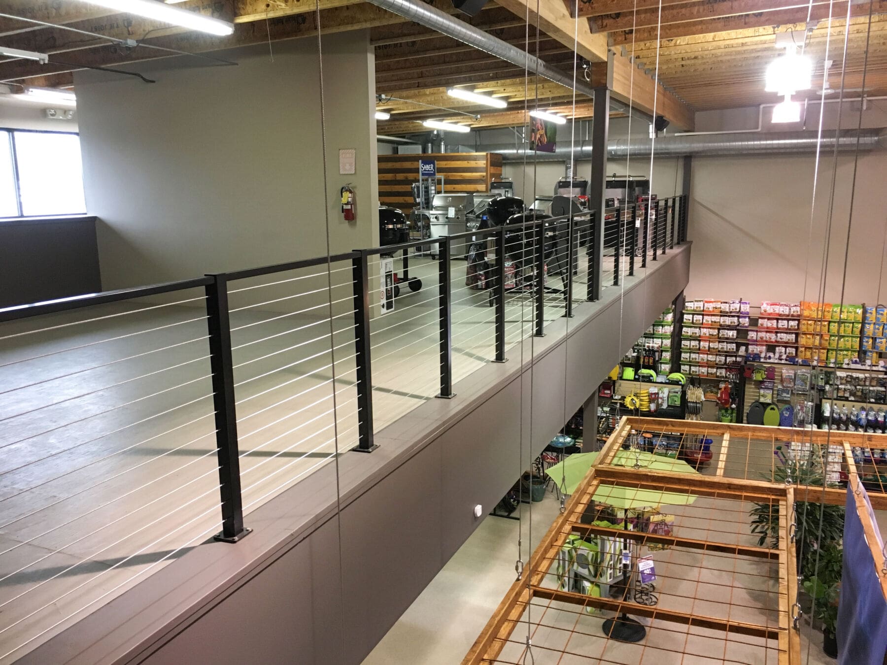 At this yard and garden store in Wilsonville, Oregon, our Black Aluminum system was used. The lines of the cable go well with the industrial aesthetic, while providing safety to guests and employees. The system will last for years with minimal maintenance.