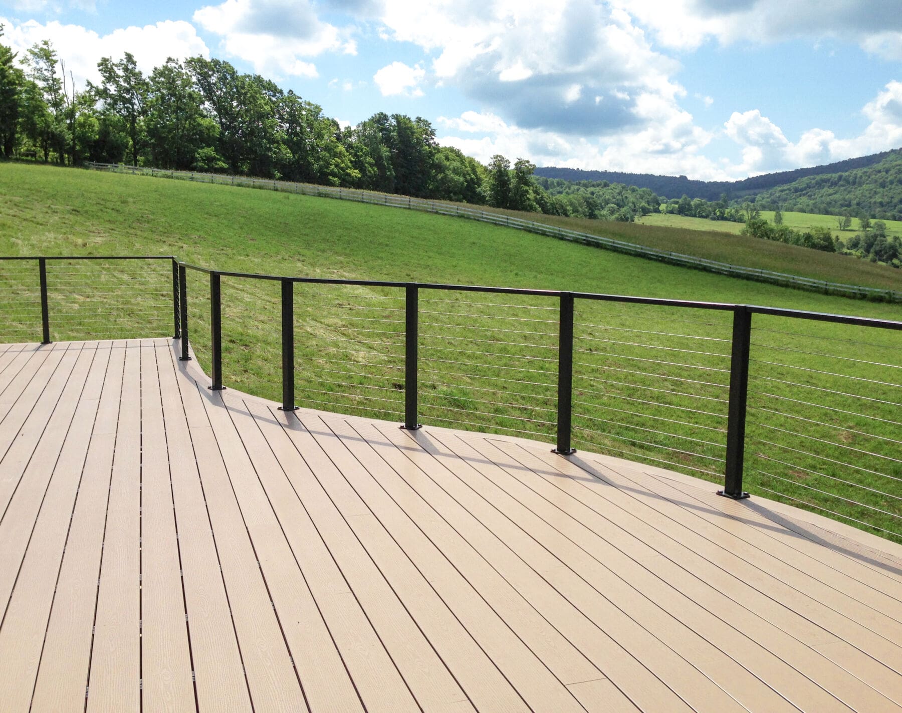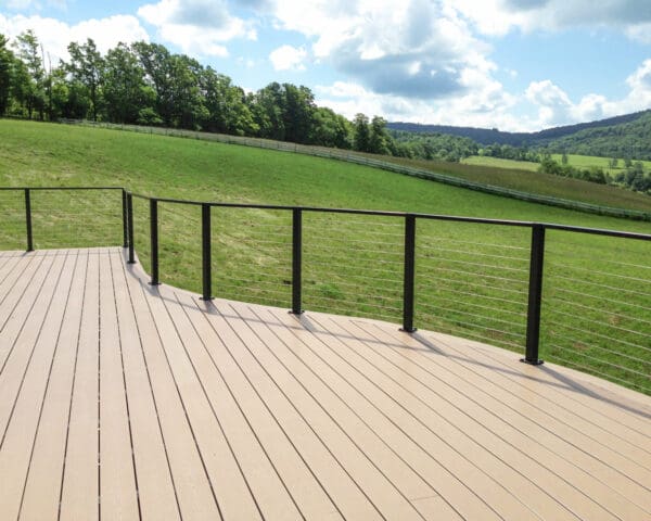 The owners of this deck took full advantage of our cable railing and Aluminum Post-to-Post Handrail to accommodate the curves of their deck while opening up their gorgeous view.