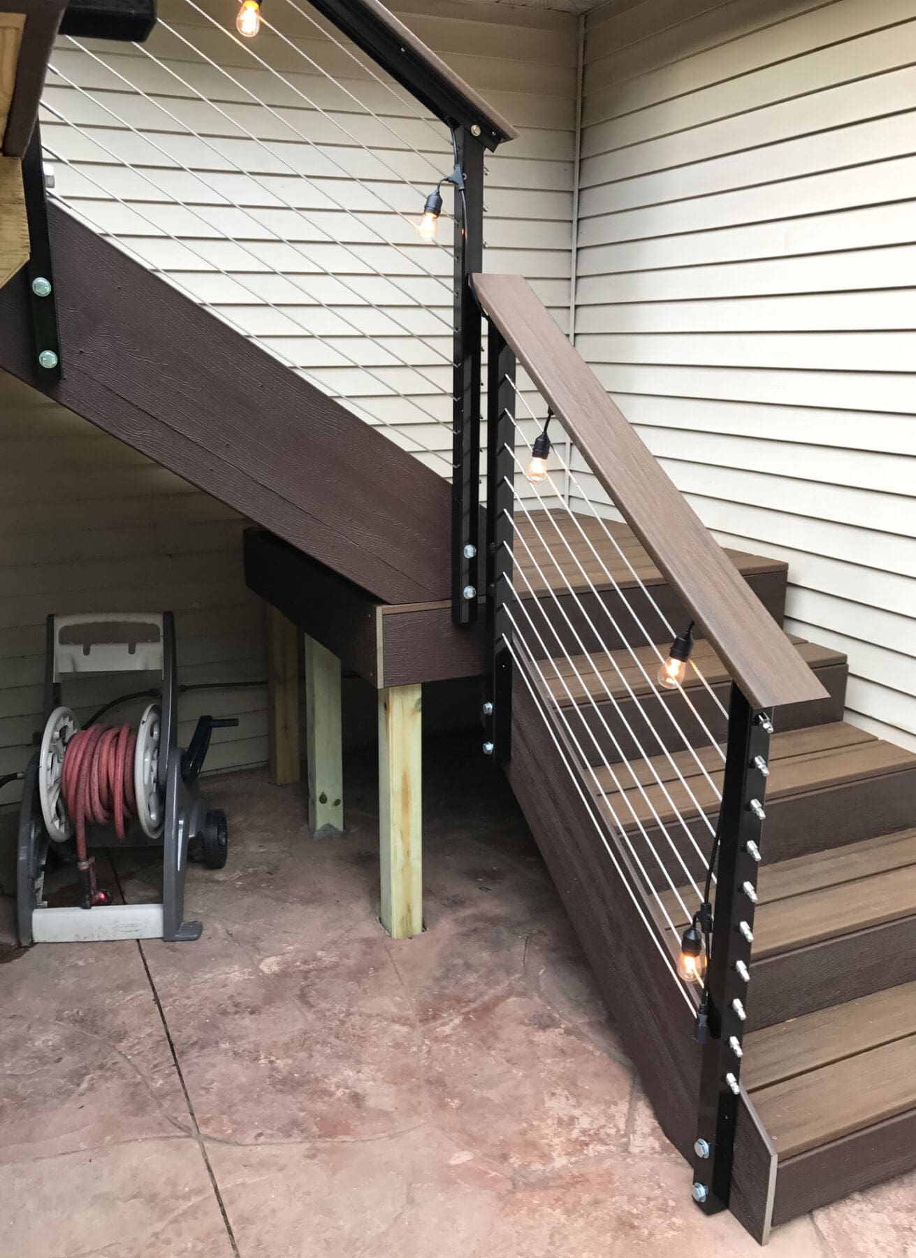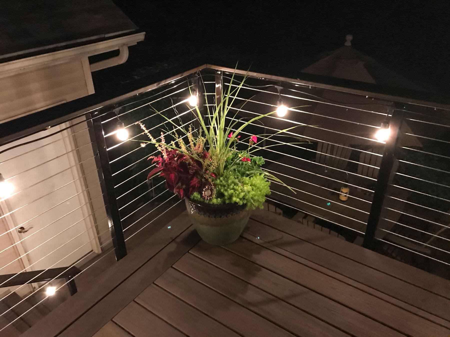 For this upper story deck in Princeton, Minnesota cable railing hardware was used. Cable railing allows the owners to enjoy the view of the yard.