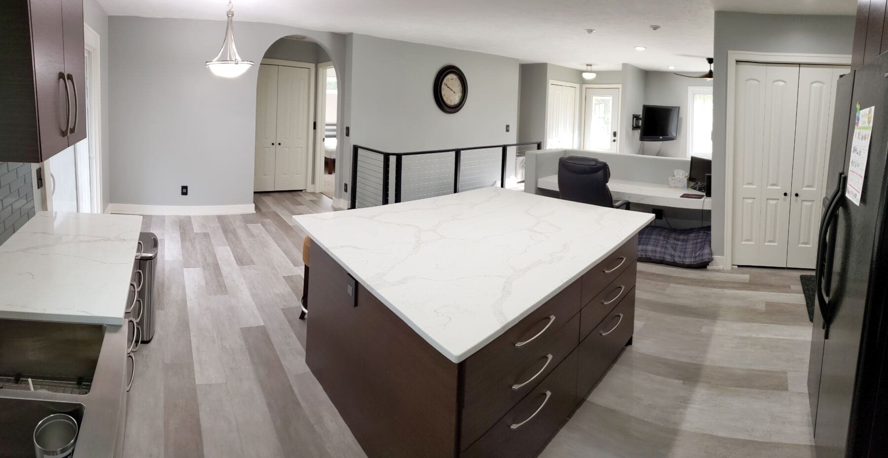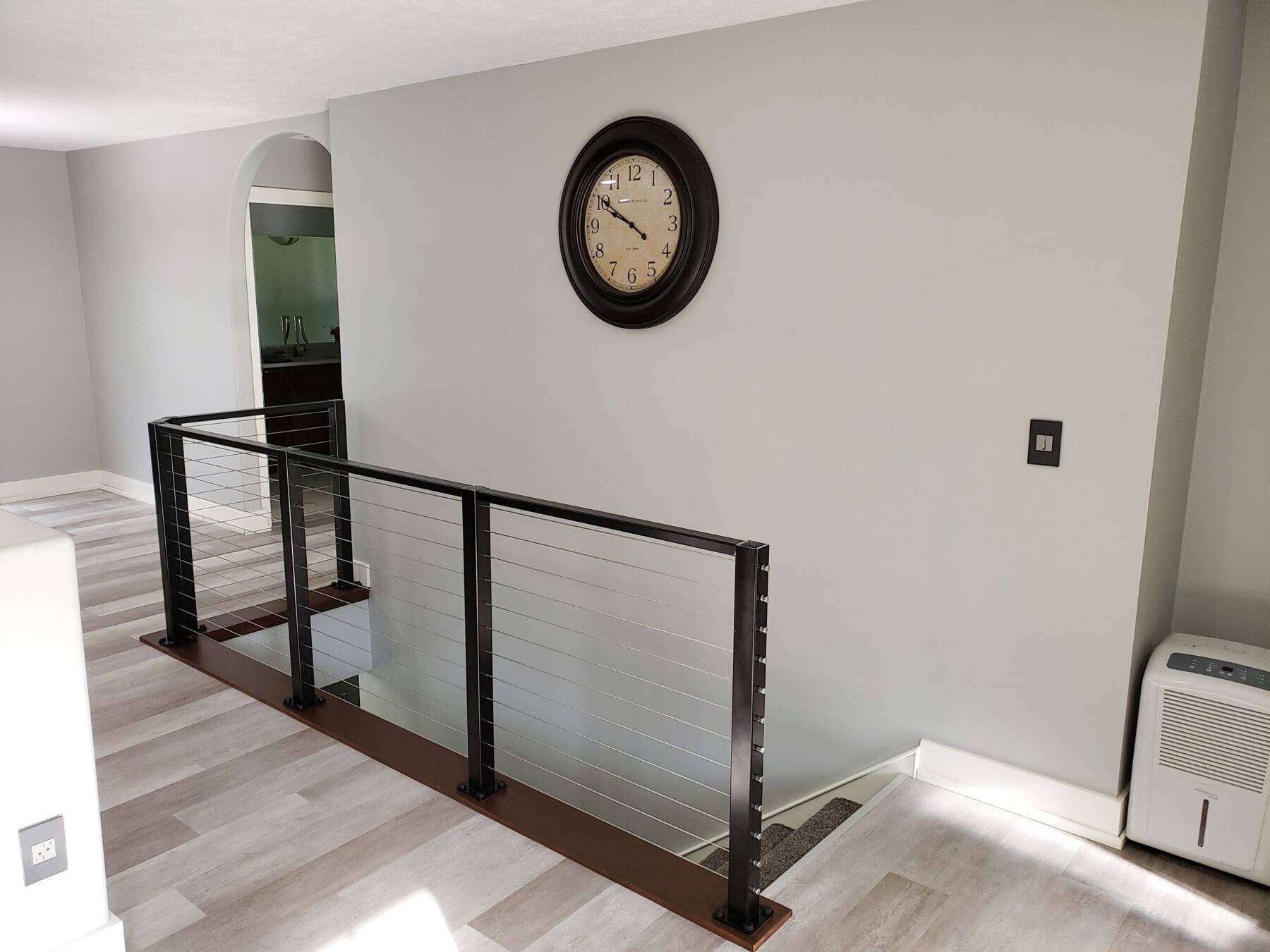 Neutral, soft colors run the show inside this house, making our black cable railing a stunning centerpiece. The open frame draws the eye without blocking the view, all the while silently protecting residents and guests from stairs leading to the floor below.