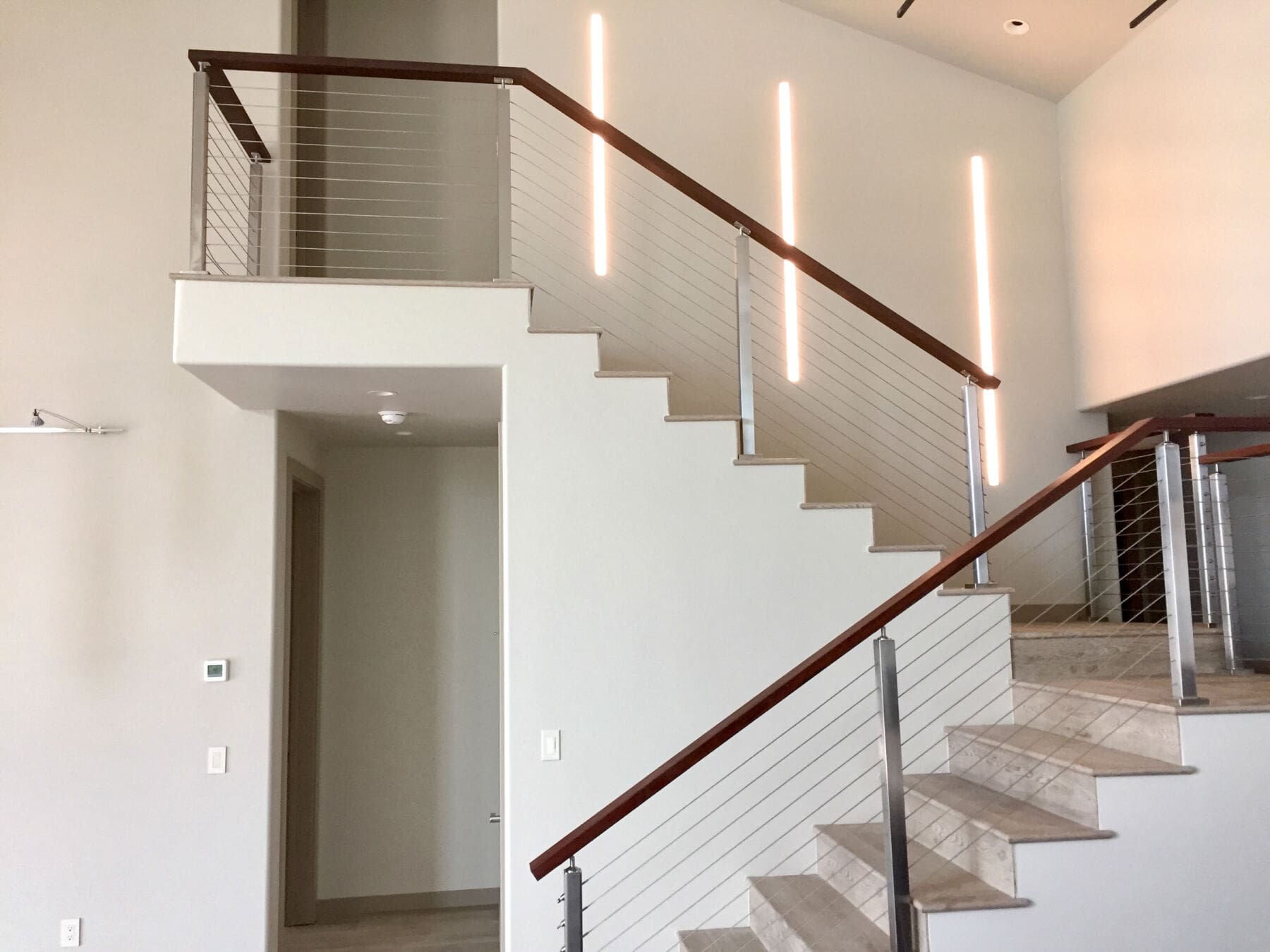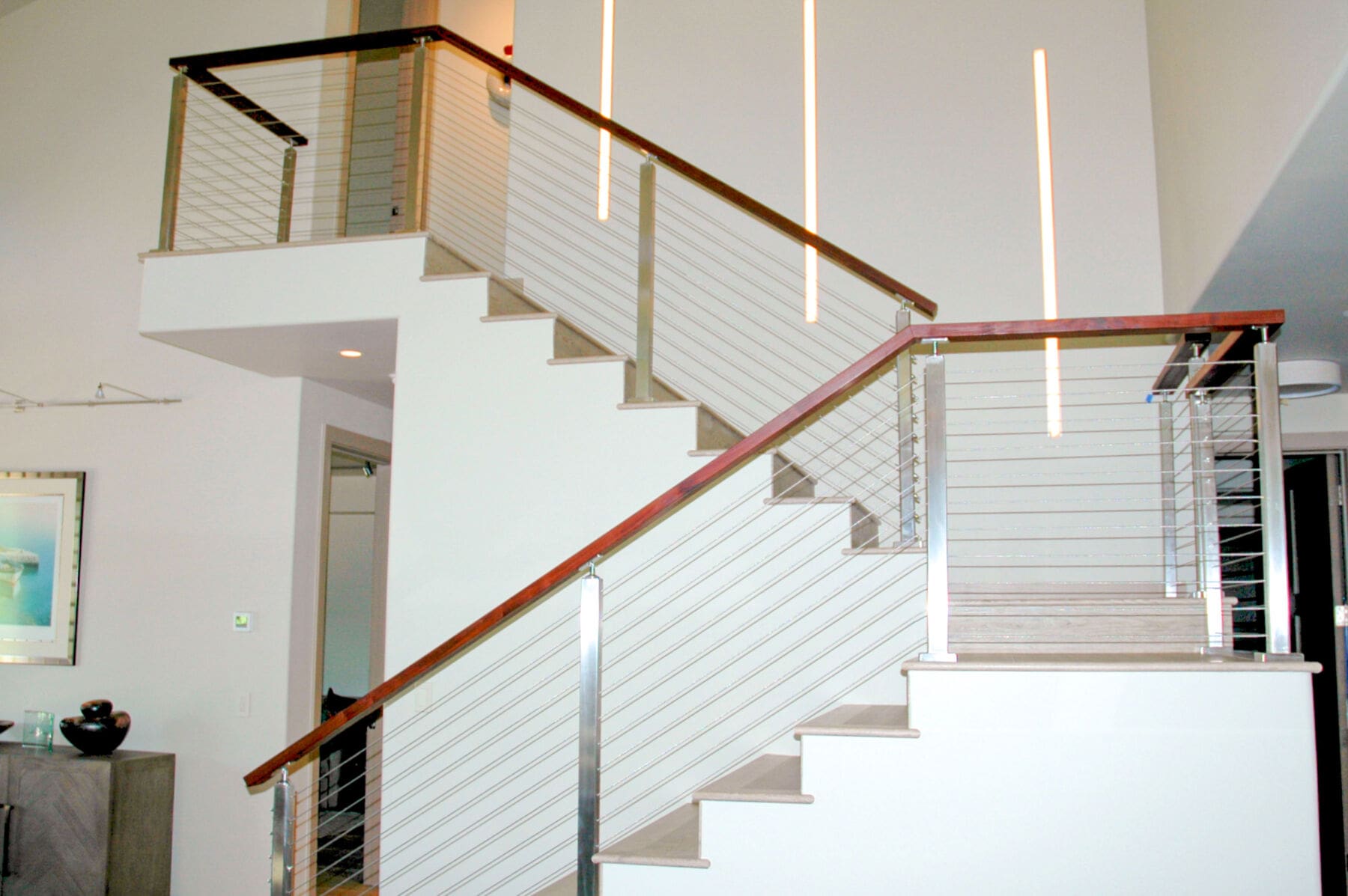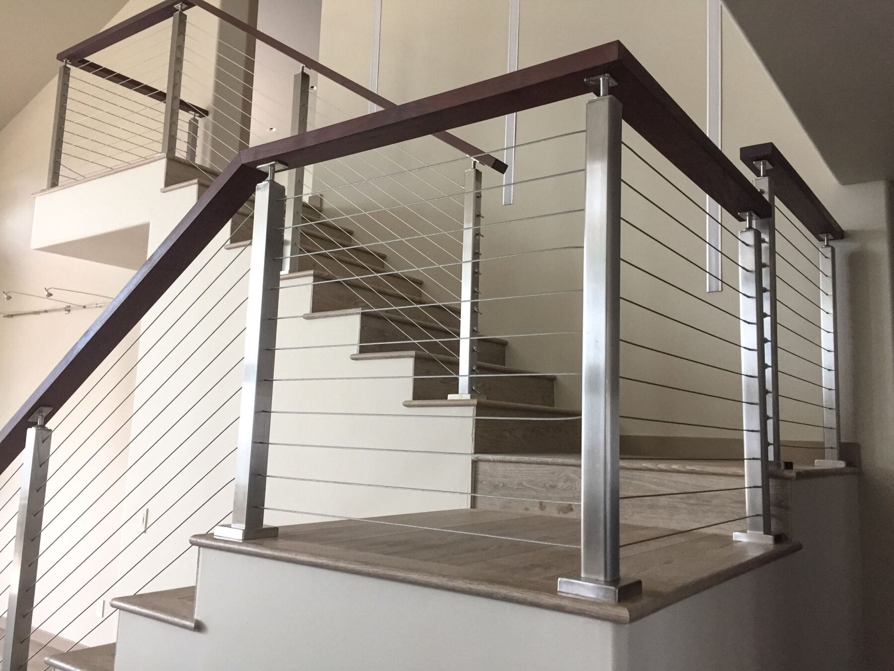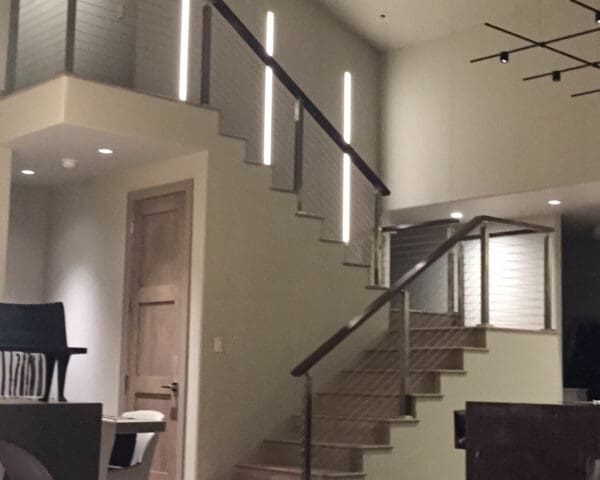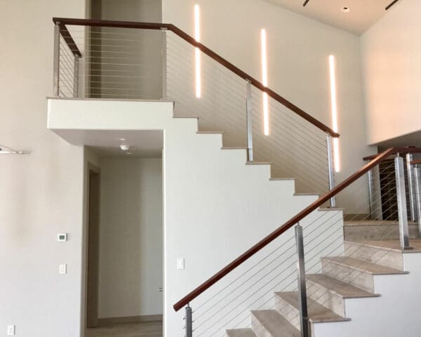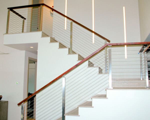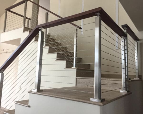 At a home in Carbondale, CO the staircase of a home got an updated look with square stainless steel railing and an Ipe wood top rail. Stainless steel railings are a great way to modernize the inside of a home.