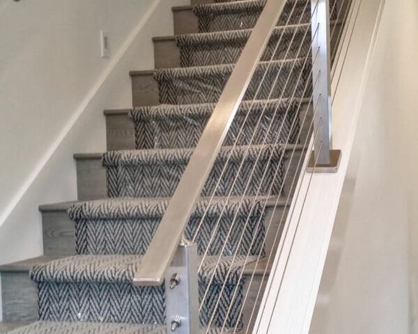- Stainless Flat Top Rail is our thinnest rail option, keeping the view as open as possible. Can also be used for a matching handrail, as seen here.