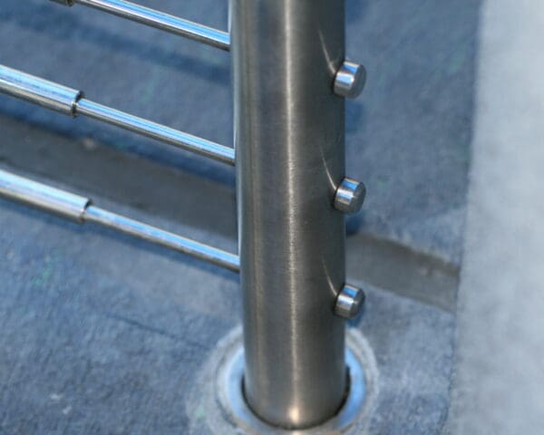 NOTE: While Fascia-Mount posts are typically installed to the side of a surface, these posts can also be embedded in concrete (or "core-mounted), as demonstrated by this project.