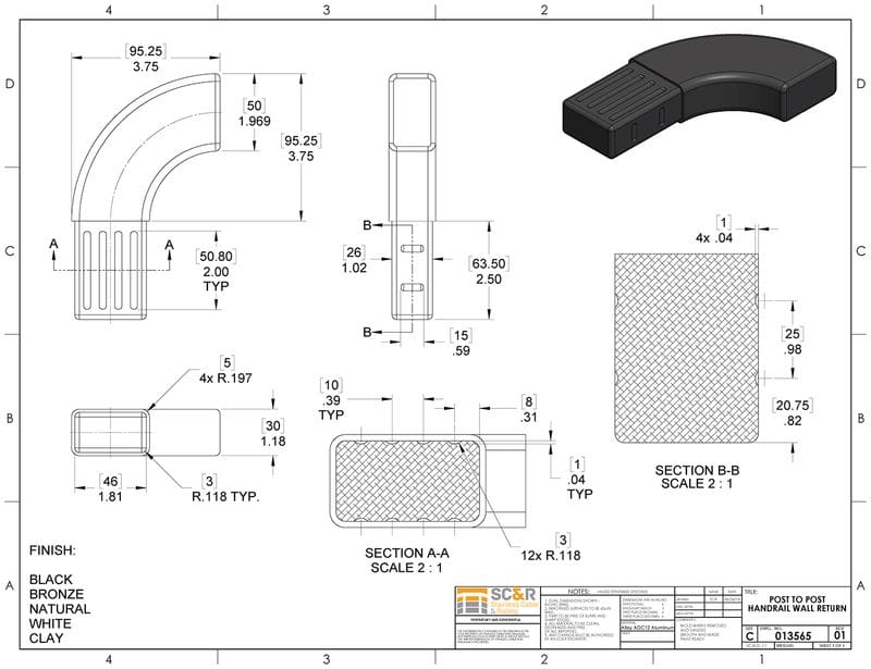 Wall Return for Aluminum Post-to-Post Rail