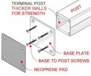 The foundation of any cable rail system is where the cables begin and end. Our DECK MOUNT TERMINAL POST is engineered specifically to withstand the applied stress when each wire rope is tensioned. Each aluminum railing post is manufactured from 6063 T6 aluminum with reinforced walls. Avoid competitor hollow posts that are designed for glass infill. When the cables are tightened in these cable railings, the posts tend to deflect, so the installer must decrease cable tension to reduce the bending.