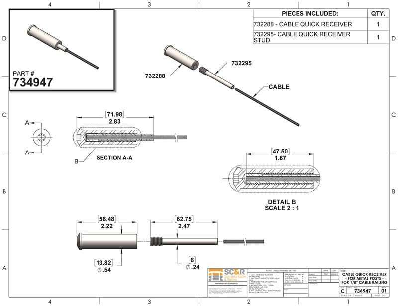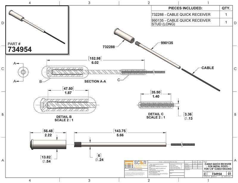 | SS Grade & Cable Size | SS 316 – For 1/8in. Cable, SS 316 – For 3/16in. Cable, SS 316 w/ Black Oxide – For 1/8in. Cable, SS 2507 – For 1/8in. Cable |