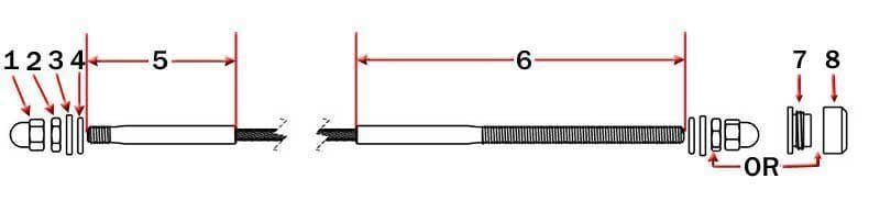 | SS Grade & Cable Size | SS 316 – 6mm thread for 1/8 in. cable, SS 316 – 8mm thread for 3/16 in. cable, SS 2507 – 6mm thread for 1/8 in. cable |
