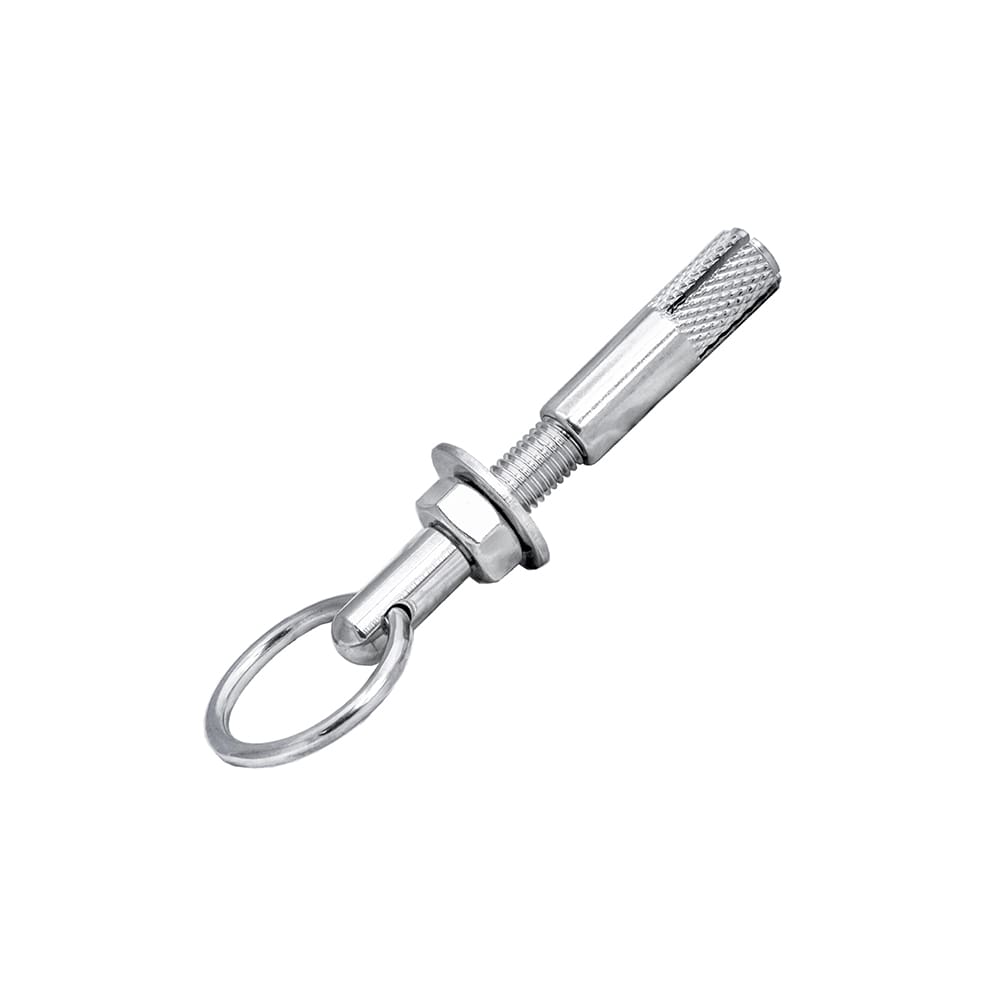 This concrete anchor has a ring end that can be used to secure cables for any application.