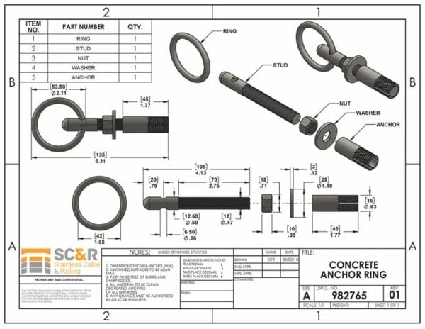 Concrete Anchor with Ring for Cable Railing