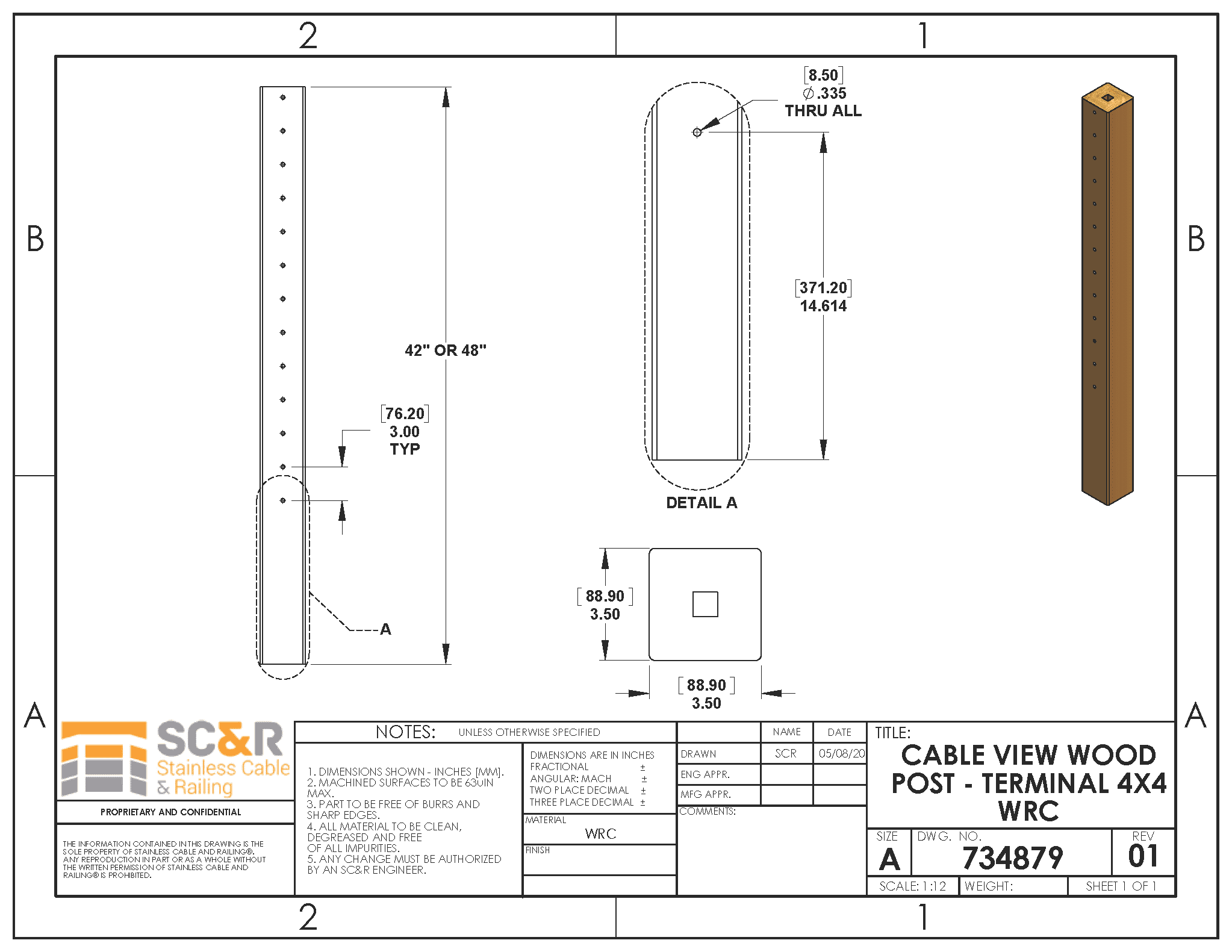 - 48″ w/ 13 predrilled holes (requiring 13 cable runs), for a total railing height of 42″ above deck boards