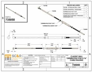 See number “1” in the above drawing to see how the CLASSIC BALL TURNBUCKLE is used in the wire rope cable assembly.