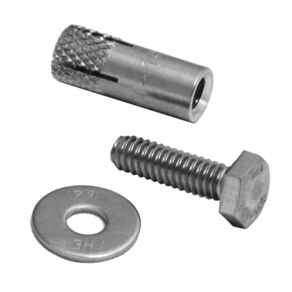 Our RED HEAD 18-8 STAINLESS STEEL DROP-IN ANCHOR ASSEMBLY is also recommended for concrete applications, featuring an internally threaded, drop-in, shell-type anchor. Includes: 1 drop-in anchor, 1 hex bolt, and 1 washer.