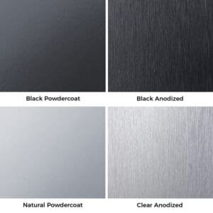 - Anodized Finish: Brushed black or clear electrochemically-achieved protective outer layer for increased corrosion resistance.