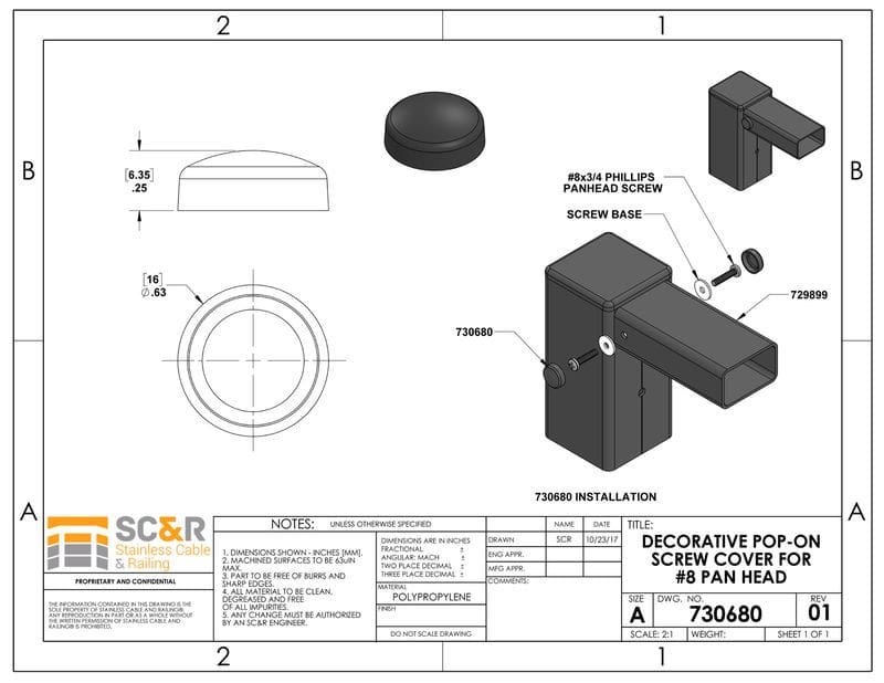DECORATIVE POP-ON SCREW COVER FOR #8 PAN HEAD SCREWS USED ON CABLE RAILING SYSTEMS