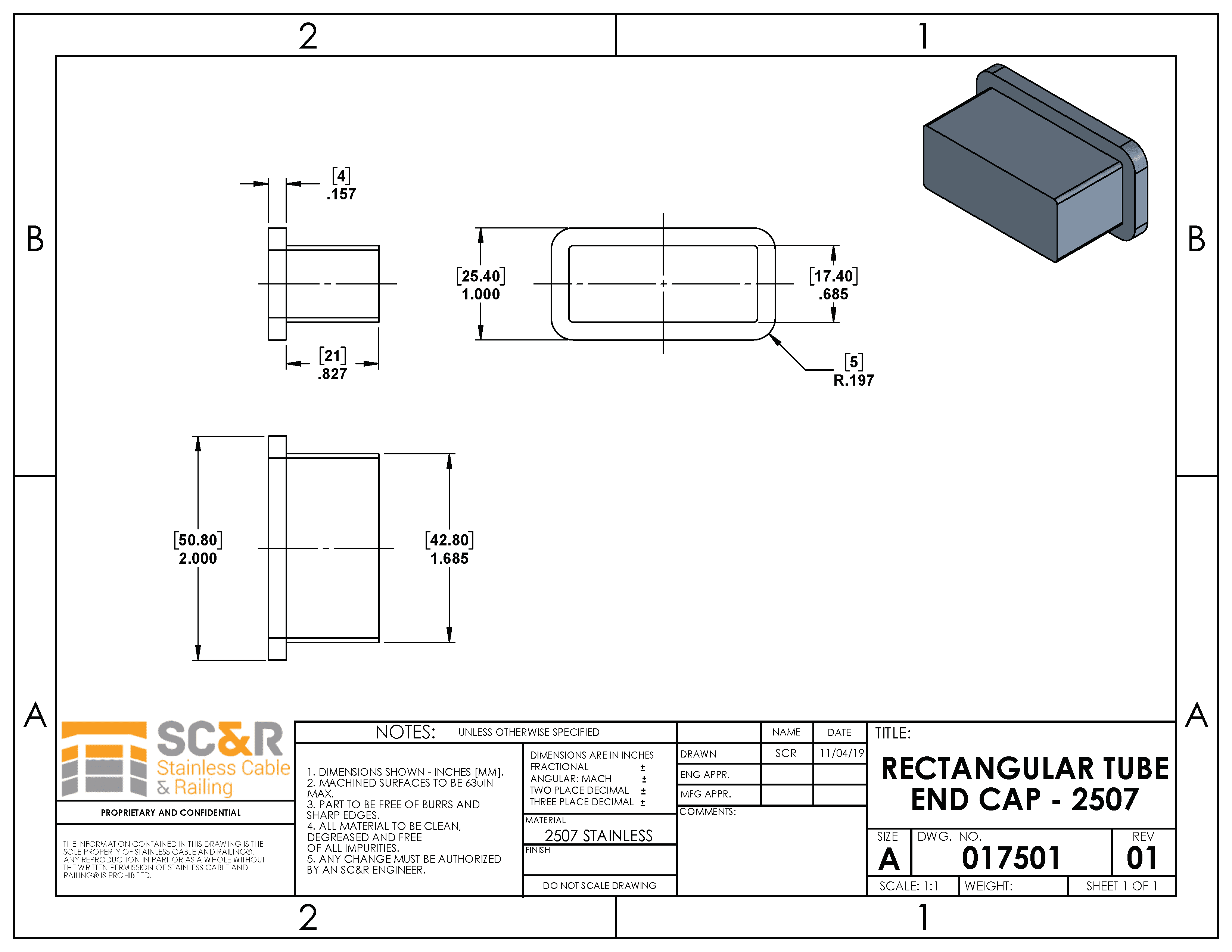 Use this end cap to seal any exposed ends on a 2507 stainless steel flat top rail or handrail.