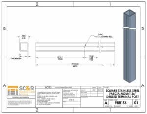 Square Stainless Steel Fascia Mount 36″ Drilled Terminal Post
