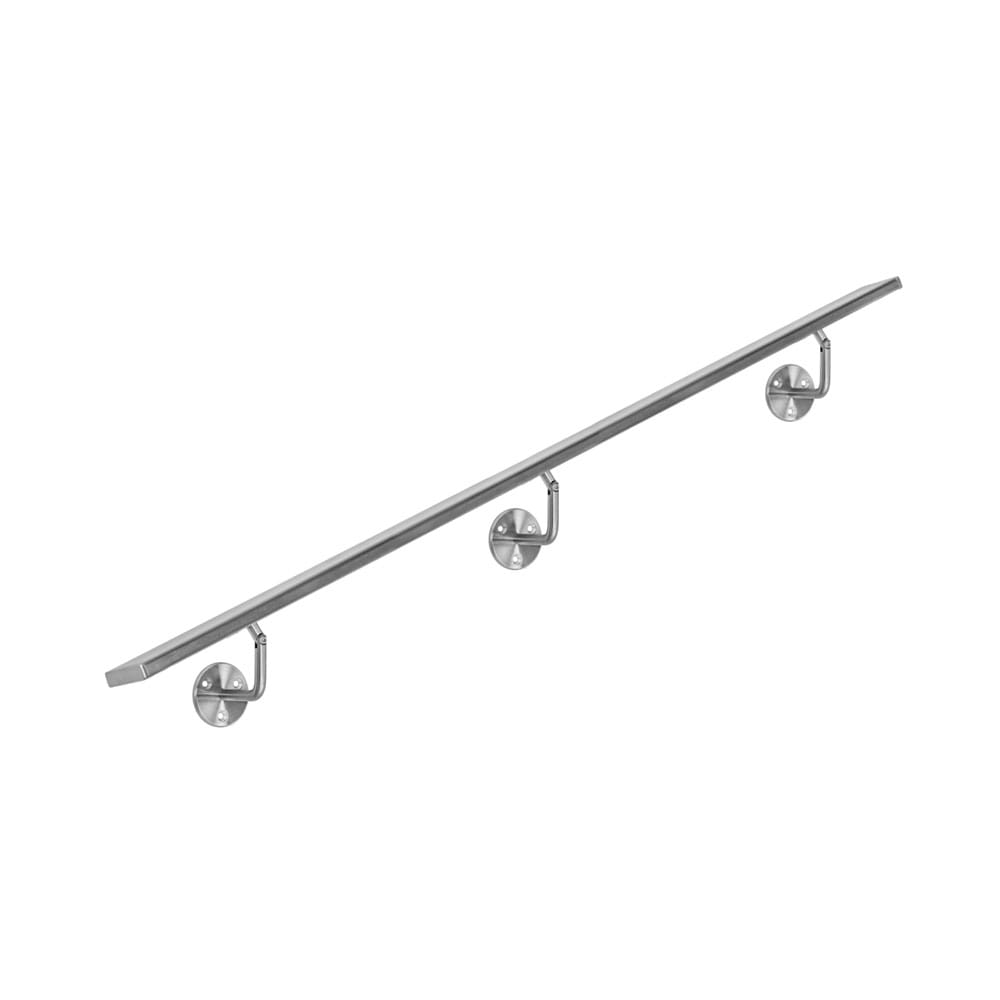 The Stainless Flat Handrail Kit contains everything you need for a simple wall-mount handrail, allowing you to easily order and install this typical product arrangement.