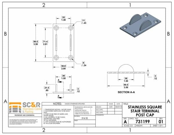 Stainless Square Stair Post Cap