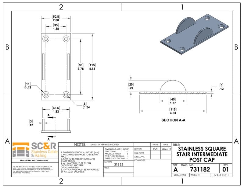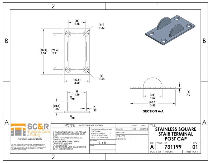 These low post caps allow you to attach a flat toprail to your stainless square posts at any angle. Perfect for stairs and sloped sections.
