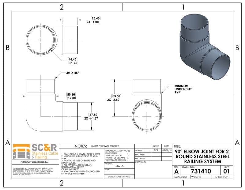 Be the first to review “90deg Elbow Joint for 2″ Round Stainless Steel Railing System”