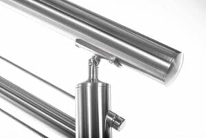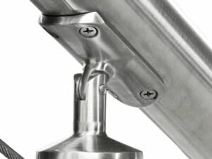 Top Rail Mount for angled surfaces. Fits into our 2in OD Round Stainless Steel Top Rail and Posts.