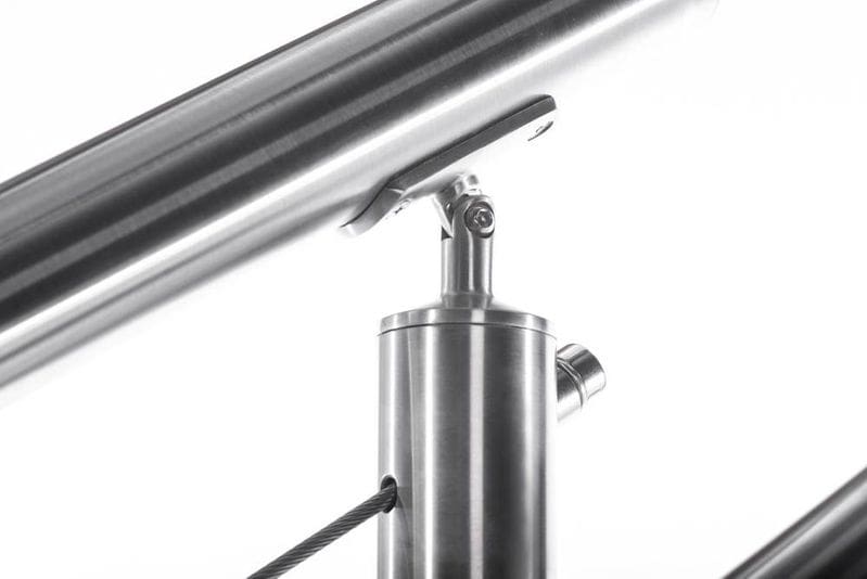 This adjustable post cap attaches to your Round Stainless Toprail at any angle. Perfect for stair or slopped sections.