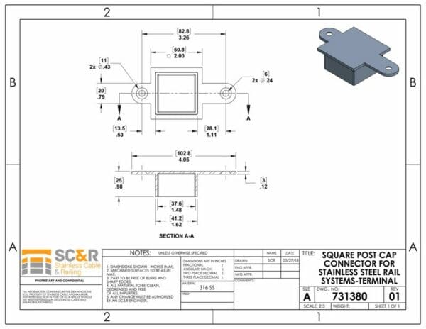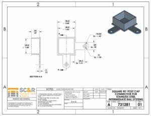 Square 90deg Post Cap Connector for Stainless Steel Rail Systems