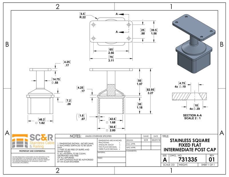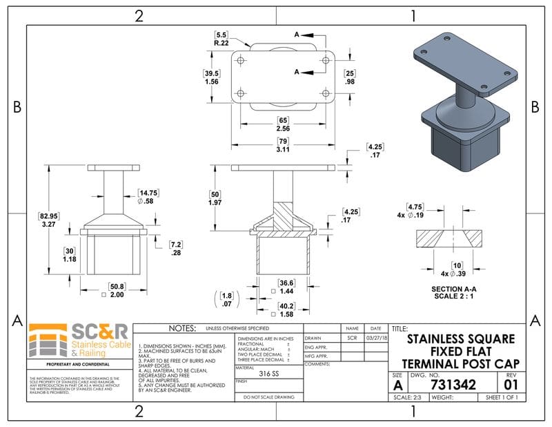 Use these post caps to attach a flat toprail to your square stainless steel posts. Order as many intermediate and terminal posts caps as you need for each intermediate and terminal post in the flat, non-stair sections of your railing system.