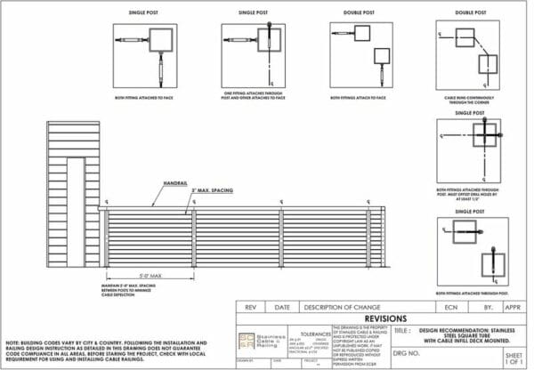 Our St. John assemblies include deck mount stainless square posts with base plates pre-welded to the bottom. Assemblies also include stemmed post caps for mounting flat stainless or wood top rails. Post caps are installed using epoxy.
