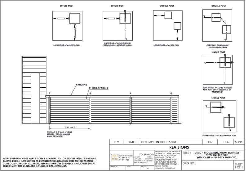 | Hole Options | Drilled for 1/8in Cable, Drilled for 3/16in Cable |
